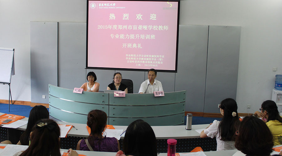 华东师范大学言语听觉科学教育部重点实验室接受郑州市教育局委托,为建设一支高素质的特教教师队伍,提高郑州市盲聋哑学校特殊教育教师的专业水平,于近期在上海开展针对特教专任教师的能力提升专业培训课程,郑州市领导和特选特教教师共计40余名参与本次课程。