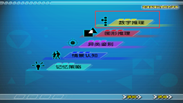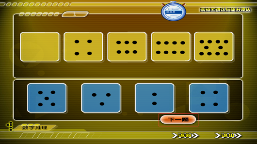 5. 输入完信息后,进入主程序,以“数字推理”为例进行评估,如下图(5.1)。进入评估页面后第一排方框有个是空的,请根据排列的规律,点击下面一排选一个补上。页面上方是计时器,计算完成这部分的时间,如下图(5.2)。完成后点击下一题。如下图(5.3)
