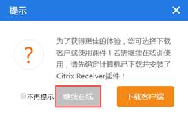 3) 电脑若没有安装Citrix Receiver插件,需从网页上选择与自己电脑系统相符的插件进行下载 帮助文档