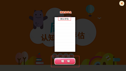 选择学生,若当前评估的学生没有与康复教师关联,选择默认学生后点击继续。如下图(4.2)