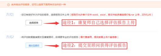 2.进入评估建议报告单,如尚未给出评估报告,您可以选择下面两种途径中的一种,如下图(2.1)
